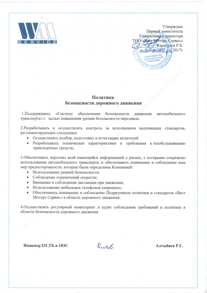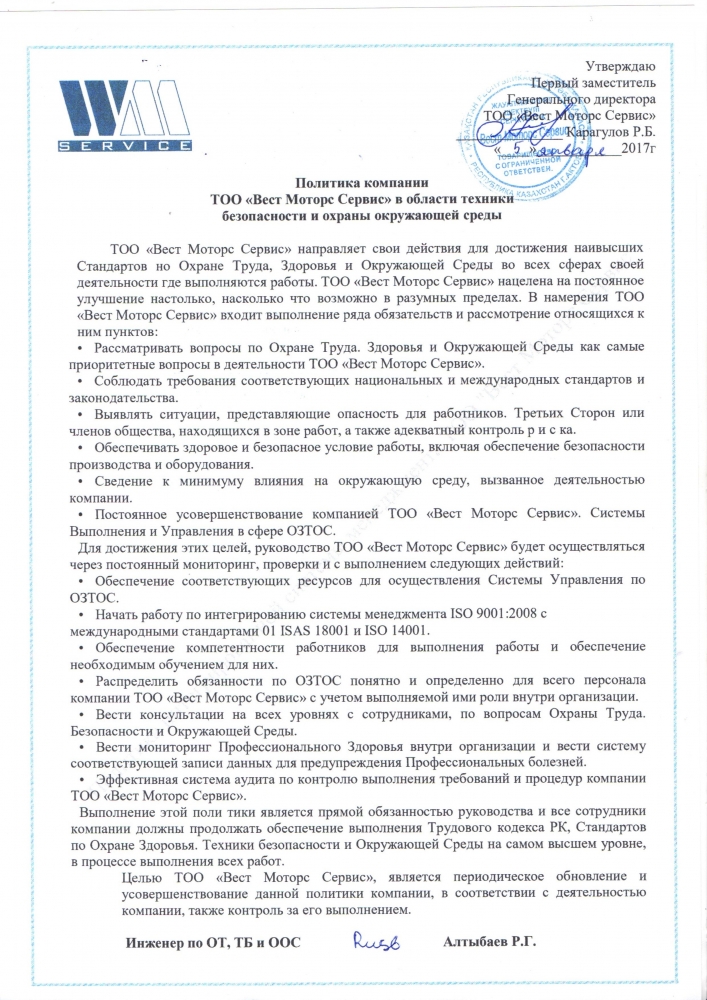 Еңбекті қорғау және қауіпсіздік және қоршаған ортаны қорғау саясаты